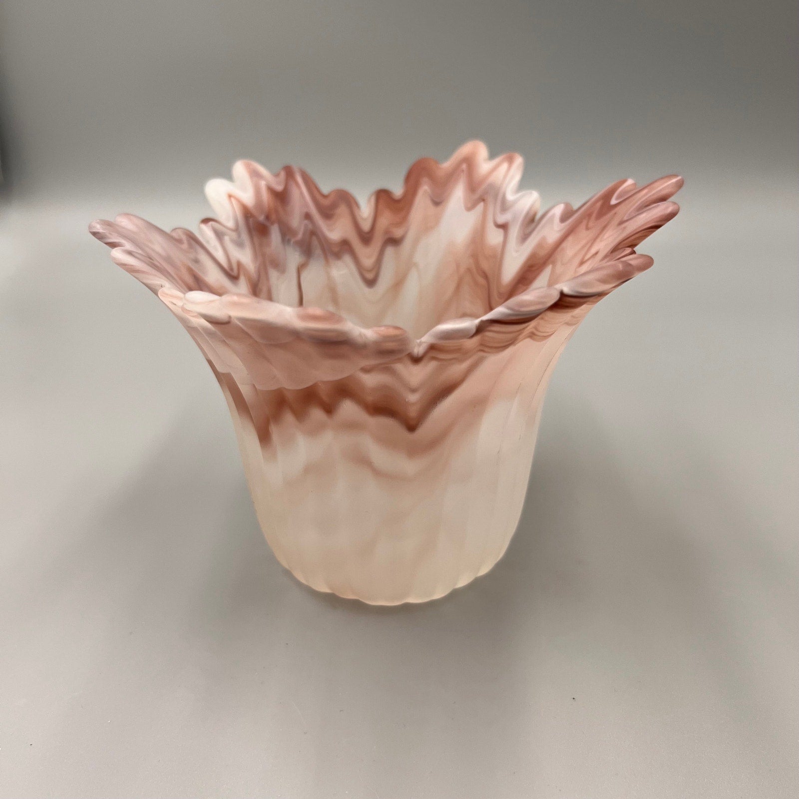 Material: Satin art glass with marbled pink/white/taupe swirl